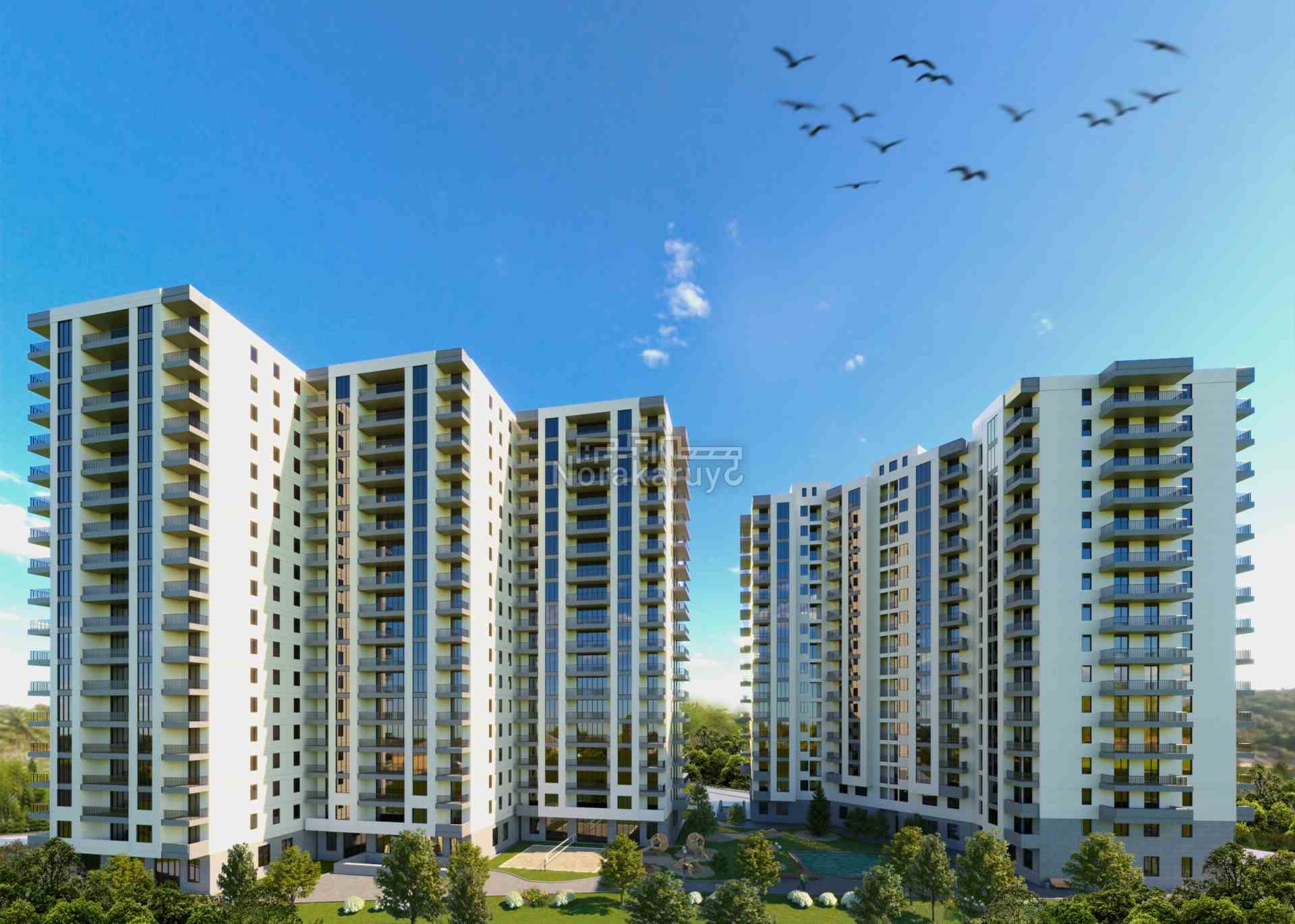 Բնակարանների մակերեսները: 43.7 - 160.3